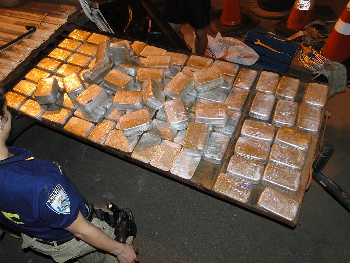 Em fiscalização minuciosa no veículo abandonado, os policiais encontram 110,07 quilogramas de pasta base de Cocaína – 108 tabletes – escondidas em um fundo falso na carroceria do veículo e em um fundo falso de uma caixa de ferramentas.