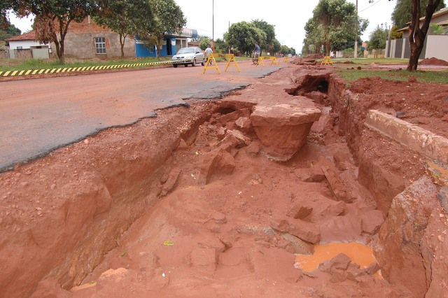 Mais uma vez uma a obra de drenagem que tem um pouco mais de 500 metros e que já se arrasta por mais de um ano sem concluir, deu problemas após as chuvas que caíram na madrugada deste sábado (15) em Angélica, que danificou novamente a obra e interditando parcialmente a Avenida Rachid Neder.