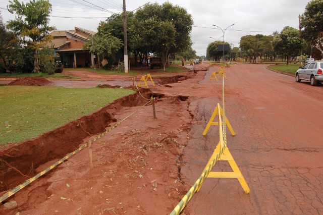 A secretaria de obras interditou parte da avenida para evitar acidentes e informou que se chover mais como as chuvas dessa madrugada a avenida vai ficar interditado por completo nas esquinas com os bairros Jardim das Flores e das Nações.