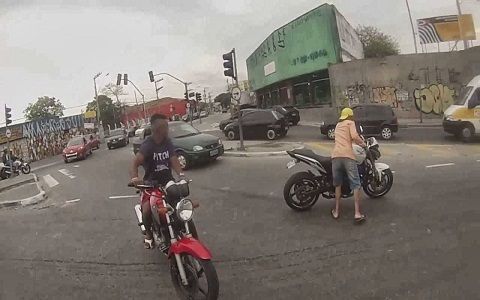 A polícia prendeu, nesta quarta-feira (11), um assaltante que conseguiu fugir após uma tentativa de assalto a um motociclista em outubro deste ano. Uma câmera no capacete da vítima flagrou a ação que acabou com outro criminoso baleado.