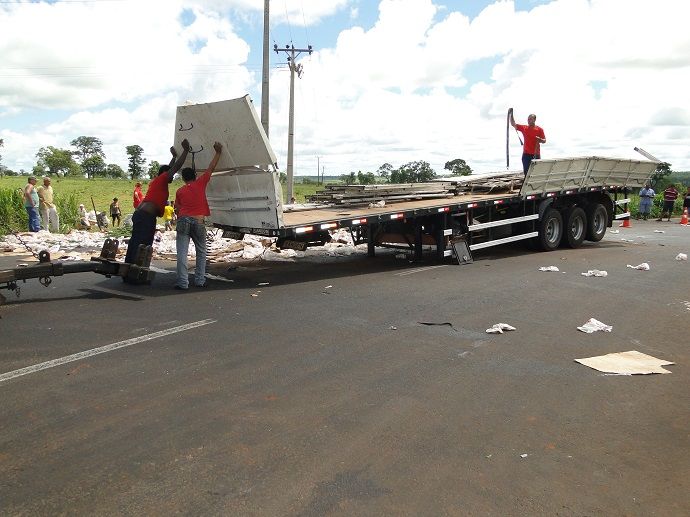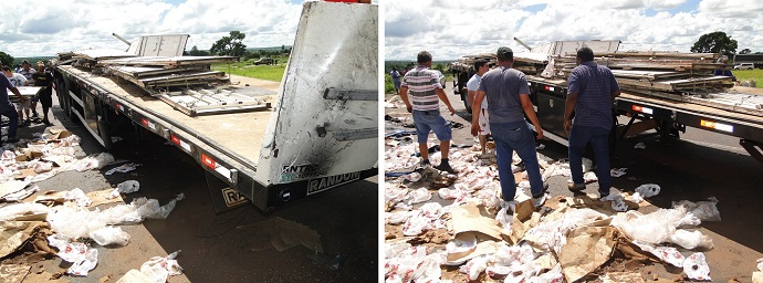 Segundo informações da PRF – Polícia Rodoviária Federal que atendeu a ocorrência, o veículo seguia pela BR no sentido Bataguassu a Nova Alvorada do Sul, quando por circunstâncias a serem apuradas, a carreta acabou tombando no trevo e espalhando a carga na via.