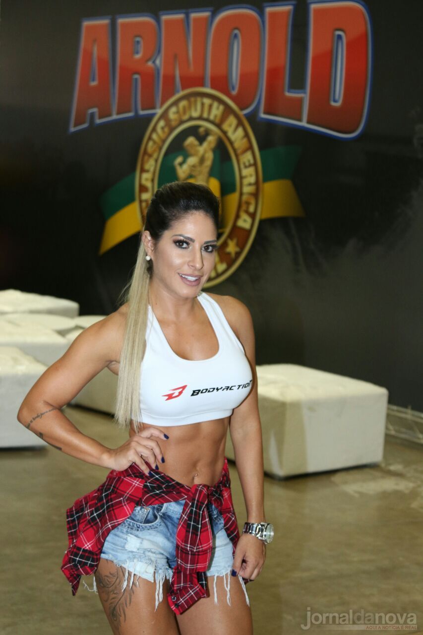 A modelo fitness Vivi Sanches de 32 anos, que é assistente de palco do "Programa da Sabrina" e também é nutricionista formada, exibiu o corpão sarado durante primeiro dia da feira Arnold Classic South América que acontece na Transamérica Expo Center, em São Paulo. Vivi contou que fez dieta restritiva para chegar a 9% de gordura corporal e posou com a barriga sarada a mostra.