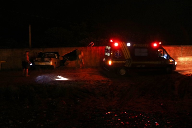 Um veículo VW/Saveiro, conduzido por um homem não identificado, por motivos a serem apurados, ficou sem controle enquanto trafegava pela rua Alvino Ribeiro, e acabou colidindo no muro de uma chácara no final da via.
