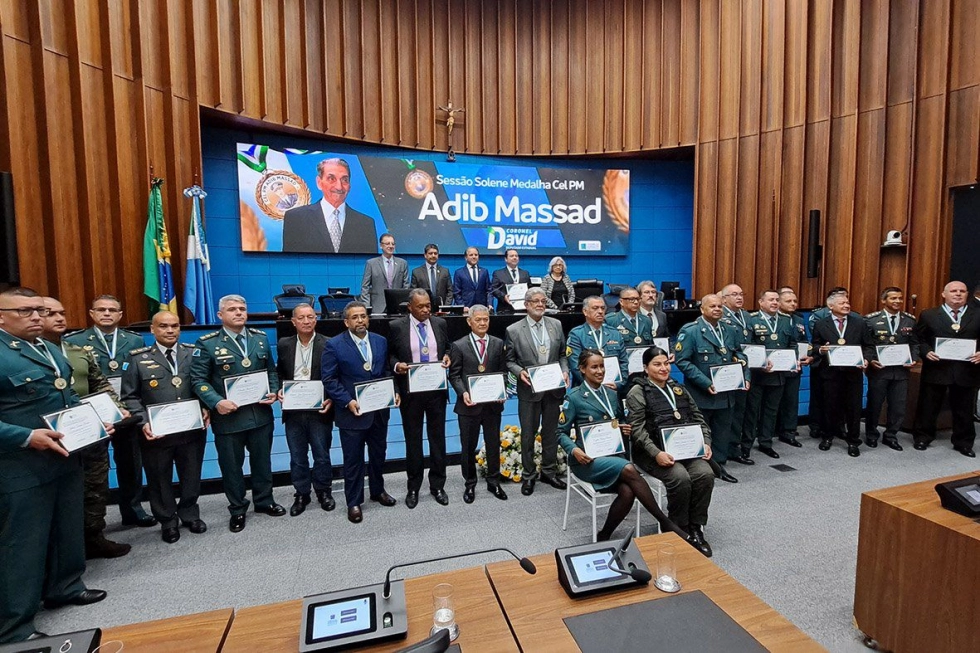 Homens e mulheres que escolhem vestir o uniforme e usar o distintivo, dia após dia, a serviço da cidadania. Um dos deveres mais solenes de uma sociedade é honrar aqueles que se sacrificam em serviço aos outros. A Assembleia Legislativa de Mato Grosso do Sul (ALEMS), na noite dessa terça-feira (19), realizou uma solenidade para agraciar profissionais da Segurança Pública com a Medalha Coronel PM Adib Massad.