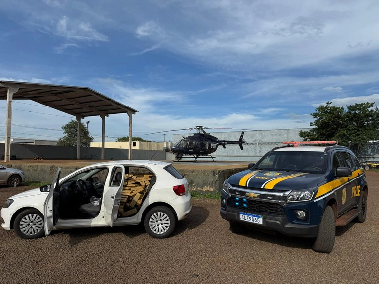 As equipes localizaram o automóvel e realizaram a abordagem. No carro foram encontrados os tabletes de maconha. O motorista disse que levaria a droga para o estado do Paraná.