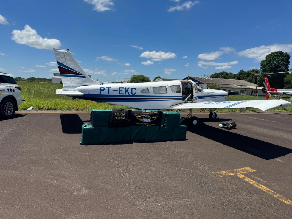 De acordo com a PM, a aeronave, que saiu do Mato Grosso do Sul, pousou em um aeroporto clandestino próximo ao terminal aéreo de Penápolis, na região de Araçatuba (SP).