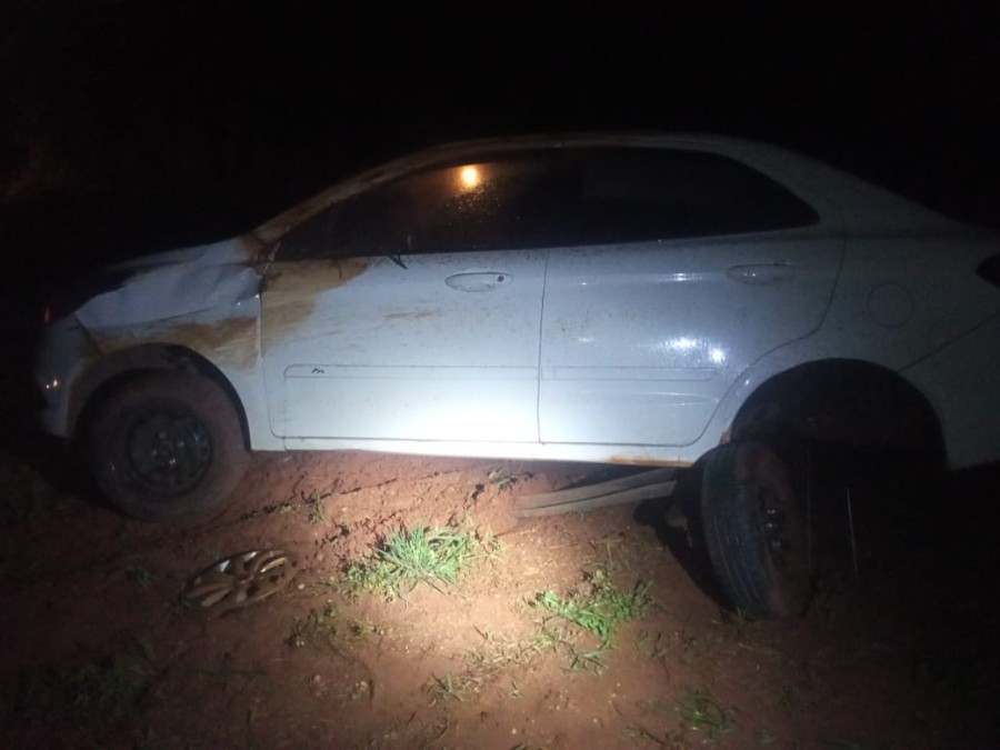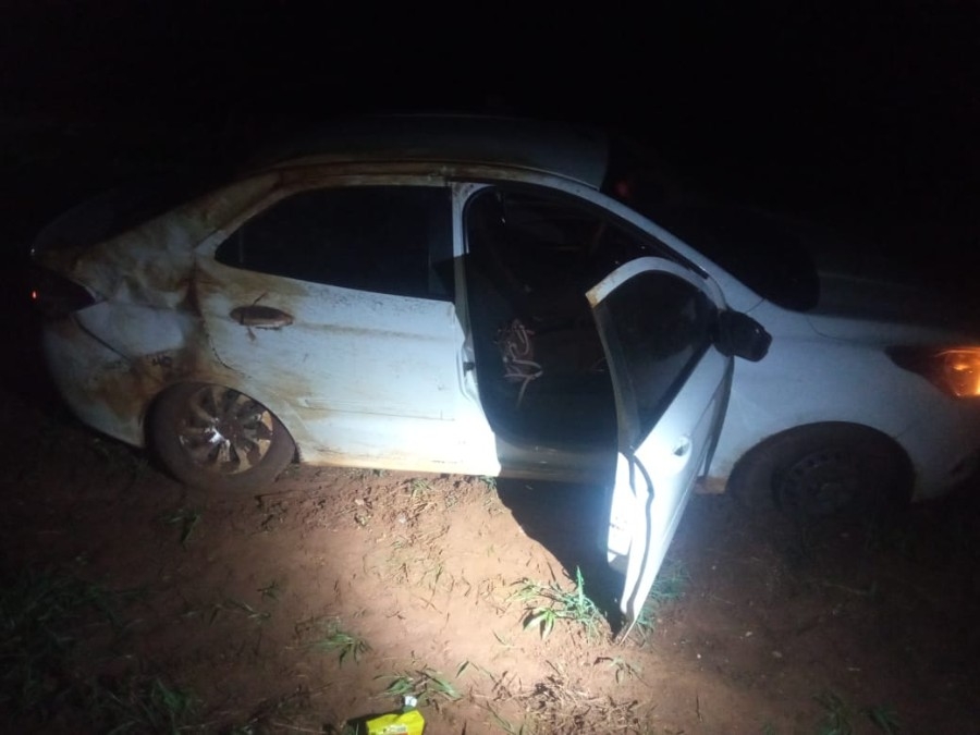 Um carro ficou bastante avariado após capotar, na noite dessa quarta-feira (12), na rodovia MS-276, próximo da ponte do Rio Samambaia, na região de Batayporã.