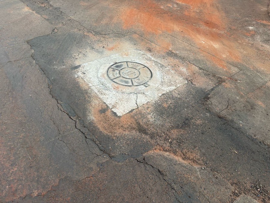 Em vários pontos do trecho da via, o asfalto remendado já está afundando e na tampa de esgoto é visível o péssimo serviço.