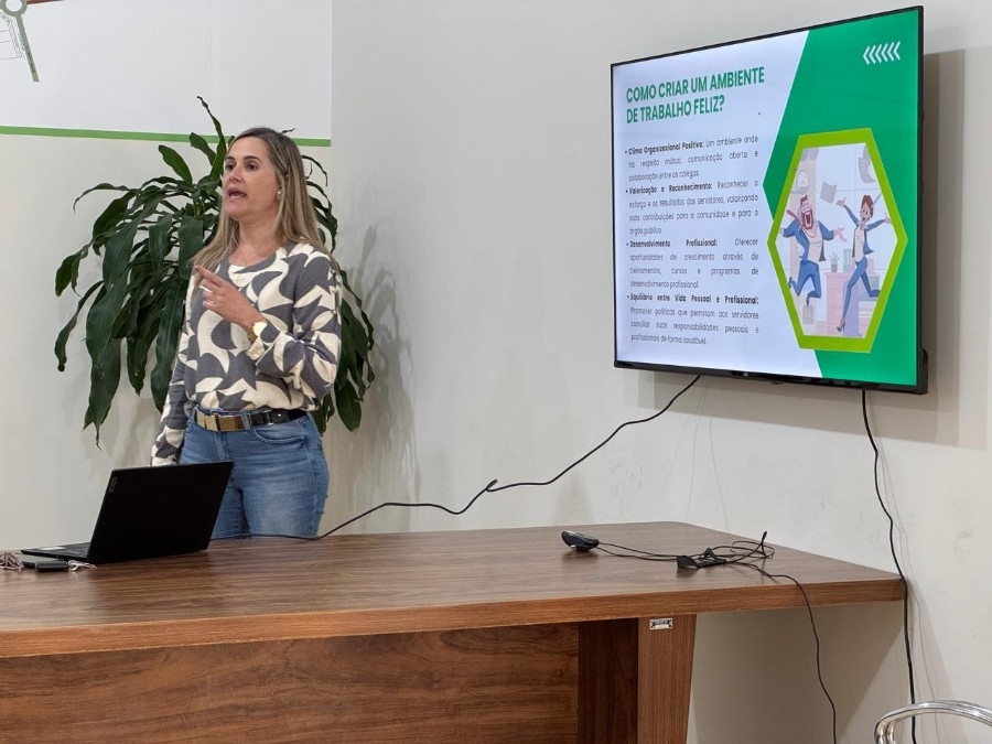 A atividade foi organizada em colaboração com o Departamento de Recursos Humanos da Prefeitura e ministrada pela engenheira de segurança do trabalho Gleice Piovesan. Durante sua fala, a especialista compartilhou orientações práticas sobre como adotar posturas e medidas preventivas no dia a dia, abordando temas como ergonomia, saúde mental, normas regulamentadoras, entre outros pontos.