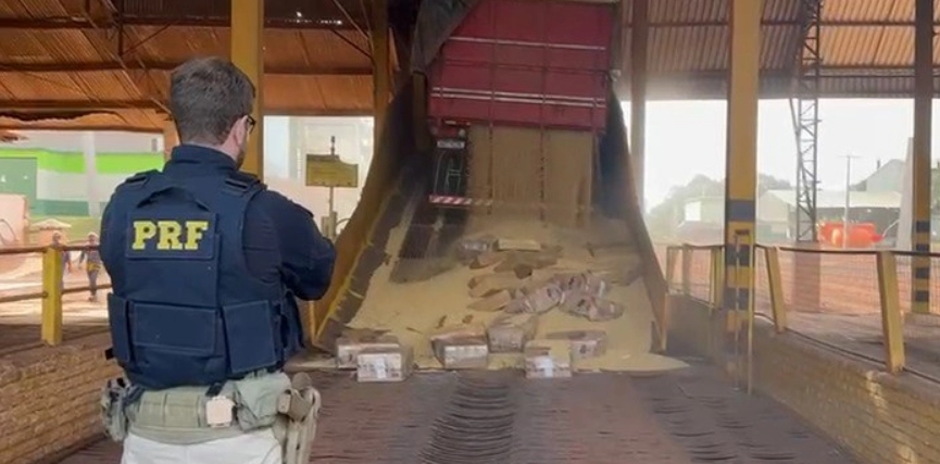 Após vistoria no veículo, a equipe encontrou grande quantidade de maconha escondida sob a carga de grãos. O motorista disse ter pegado a droga em Ponta Porã e que a levaria até São Paulo (SP).