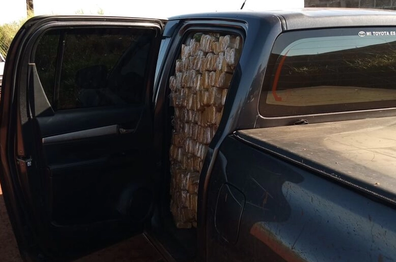 A apreensão ocorreu após os agentes identificarem uma caminhonete Toyota/Hilux com placas paraguaias apresentando dificuldades para se locomover, o que levantou suspeitas. Ao tentarem realizar a abordagem, os ocupantes do veículo desobedeceram à ordem de parada e iniciaram uma fuga em alta velocidade pela região de fronteira.