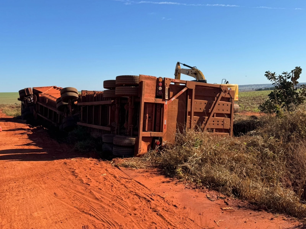Uma carreta canavieira tombou na estrada cascalhada da MS-473, trecho que liga o perímetro urbano de Nova Andradina ao bairro Laranjal. O acidente aconteceu na tarde de ontem (18) e o motorista saiu ileso.