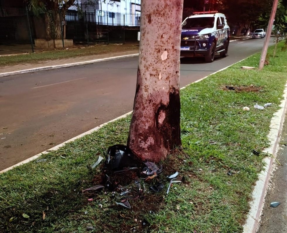 Um adolescente, de 17 anos, conduzia uma motocicleta com placa padrão Mercosul, quando perdeu o controle e colidiu violentamente contra um coqueiro, localizado no canteiro central da via.