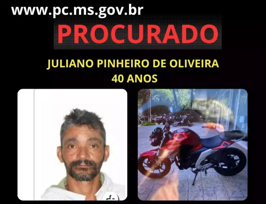 Juliano Pinheiro de Oliveira, de 40 anos, fugiu em uma motocicleta Factor de cor vermelha logo após o crime