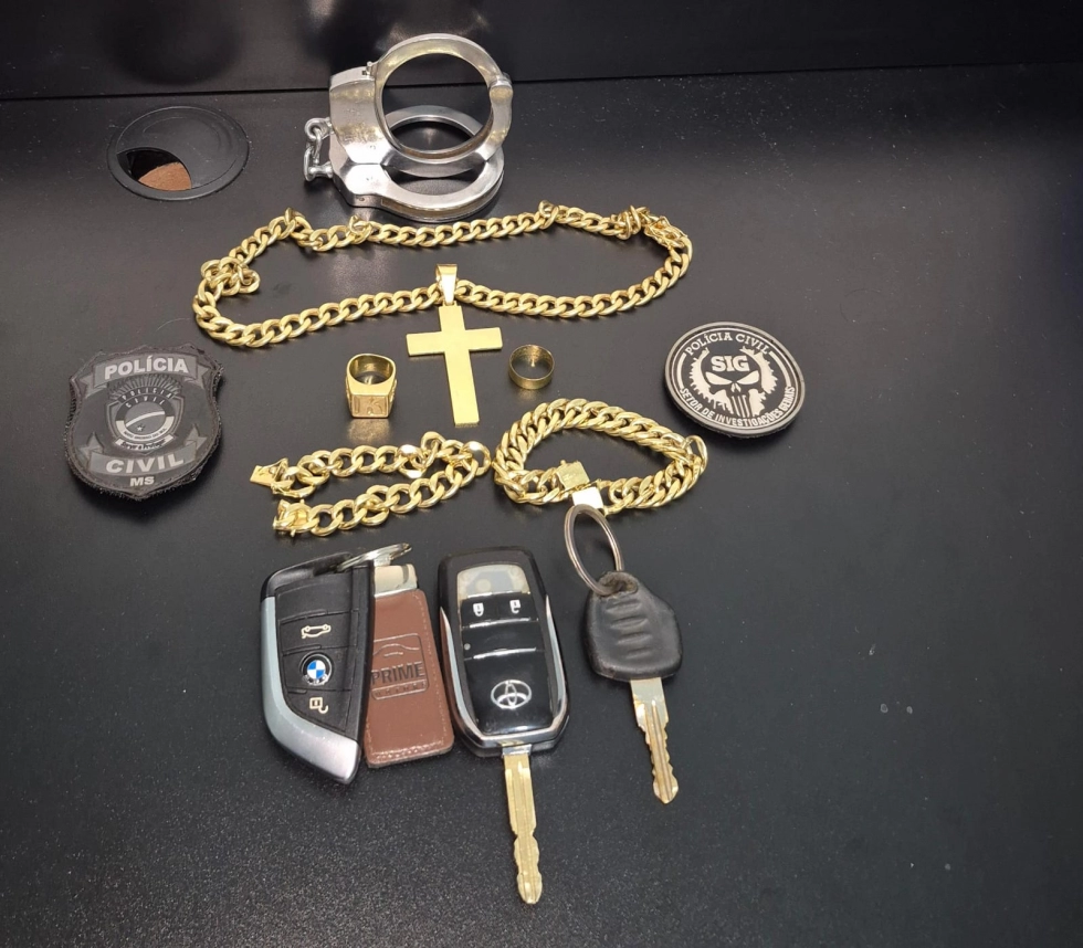 Ainda durante as diligências, foram apreendidas algumas pulseiras que aparentam ser de ouro. Caso confirmado o material, estima-se que o valor dessas joias possa ultrapassar R$ 96 mil.