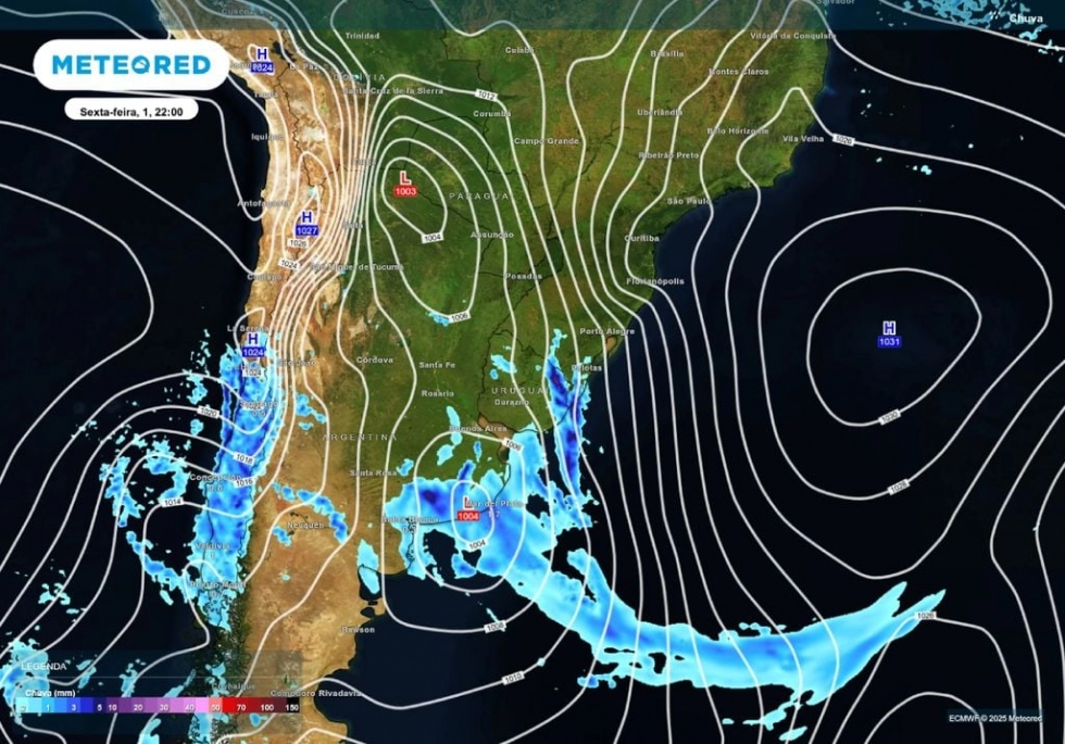 Um ciclone extratropical começa a se formar sobre a Argentina na noite de sexta-feira (1º). Ainda na sexta-feira à noite, já pode chover no sul do Rio Grande do Sul, com risco de tempestades localizadas.