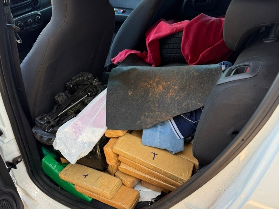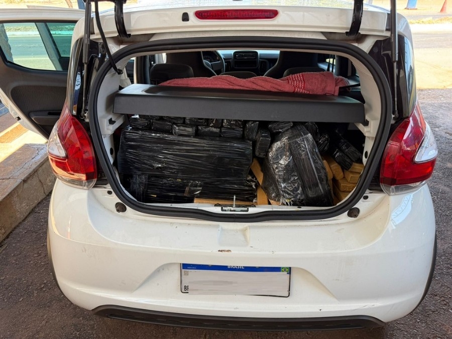 Assim que o vidro dianteiro foi aberto, os agentes visualizaram diversos tabletes de maconha no interior do veículo. Diante da situação, o motorista se entregou imediatamente. A droga, acondicionada no porta-malas e no banco traseiro, totalizou aproximadamente 333 quilos.