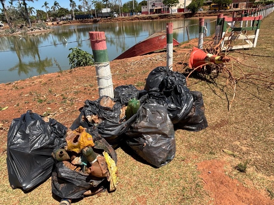 Ação conjunta recolhe 80 quilos de lixo na Lagoa do Sapo em Batayporã