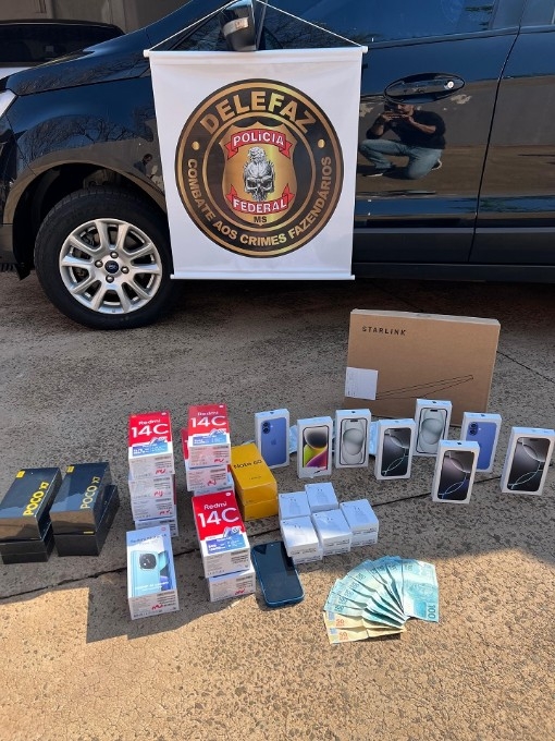 A Polícia Federal, em ação conjunta com a Receita Federal, apreendeu 100 aparelhos celulares