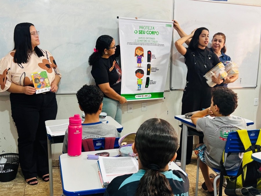 Durante as atividades, a equipe técnica do Centro de Referência Especializado de Assistência Social (Creas) realizou palestras e dinâmicas com os alunos, utilizando materiais informativos e lúdicos, como banner didático e panfletos educativos, para abordar de forma acessível e reflexiva a importância da proteção e do diálogo sobre o assunto. Participaram da ação as servidoras Annie Caroline (psicóloga), Rubiana Marques (assistente social), Izabel Neves (educadora social), Talita Vita (coordenadora da Proteção Social Especial de Média e Alta Complexidade) e Claudia Macedo (coordenadora do Creas).