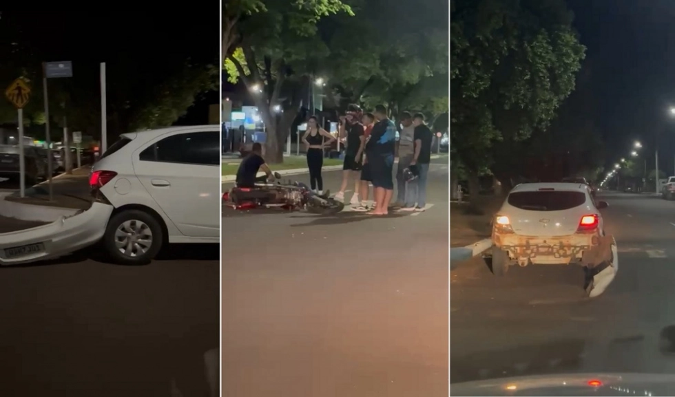 Um motociclista ficou ferido após uma colisão com um carro na avenida Antônio Joaquim de Moura Andrade, esquina com a rua Elizabeth Robiano, na região central de Nova Andradina.