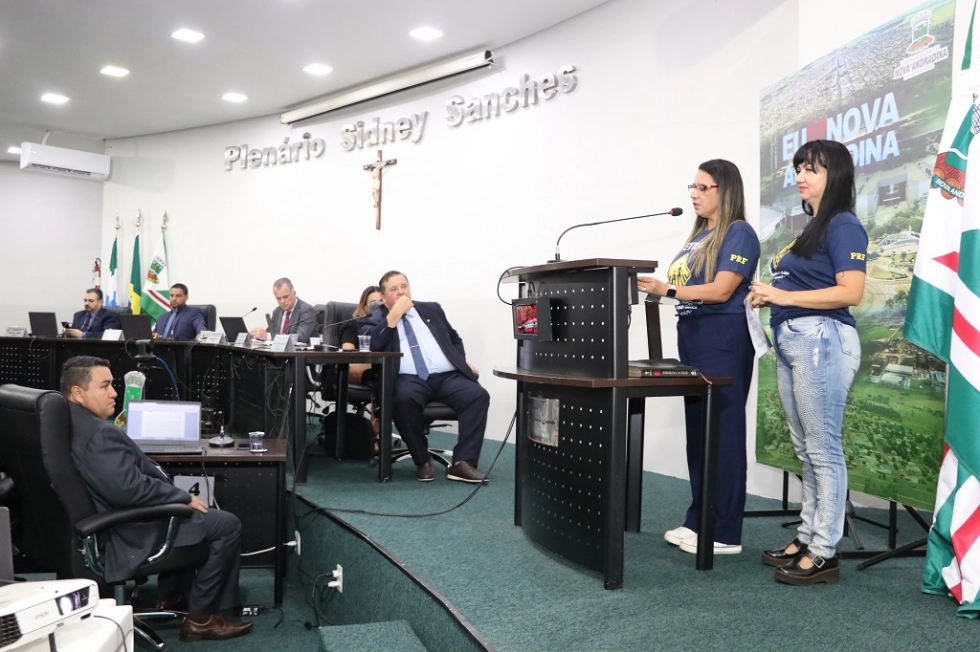 Durante a sessão ordinária desta segunda-feira, 11 de novembro, a Câmara Municipal de Nova Andradina entregou uma Moção de Parabenização à Equipe Fetran 2025, campeã estadual da edição especial de 15 anos do Festival de Educação para o Trânsito (FETRAN). A homenagem foi proposta pelos vereadores Deildo Piscineiro (PSDB), Fábio Zanata (MDB) e Márcia Lobo (Podemos).