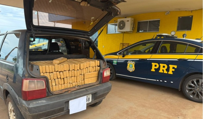 Durante fiscalizações na BR-262, os policiais abordaram um Fiat/Uno. Dentro do veículo os policiais avistaram grande quantidade de maconha.