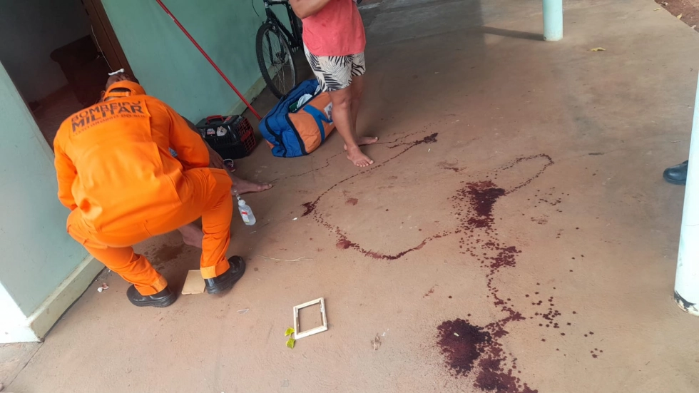 Os policiais se deslocaram até o local acompanhados pelo Corpo de Bombeiros. Ao chegarem, encontraram apenas o pai, ainda com sangramento na cabeça. A esposa informou que o filho havia fugido para a cidade logo após a agressão.