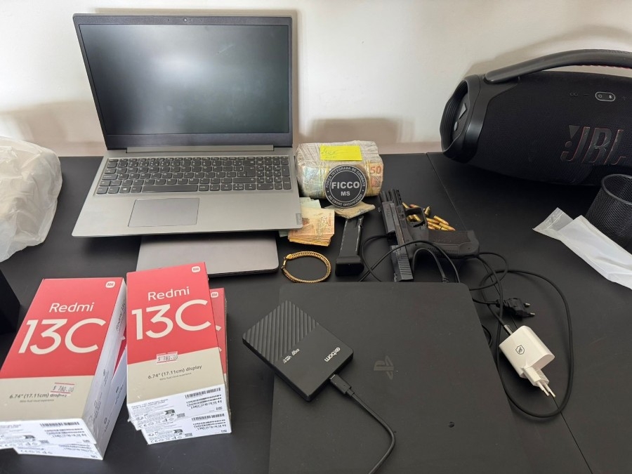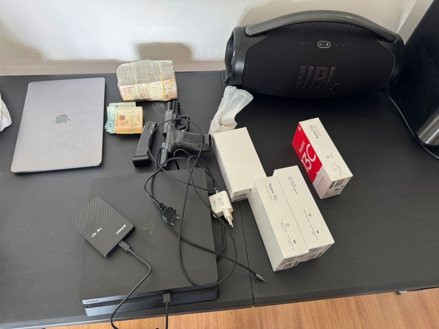 Durante o cumprimento de mandado de busca e apreensão no endereço associado ao investigado, as equipes localizaram grande quantidade de dinheiro em espécie, além de arma de fogo, munições, computadores, documentos e aparelhos celulares. O material apreendido reforça os indícios de uma atuação criminosa organizada e estruturada.
