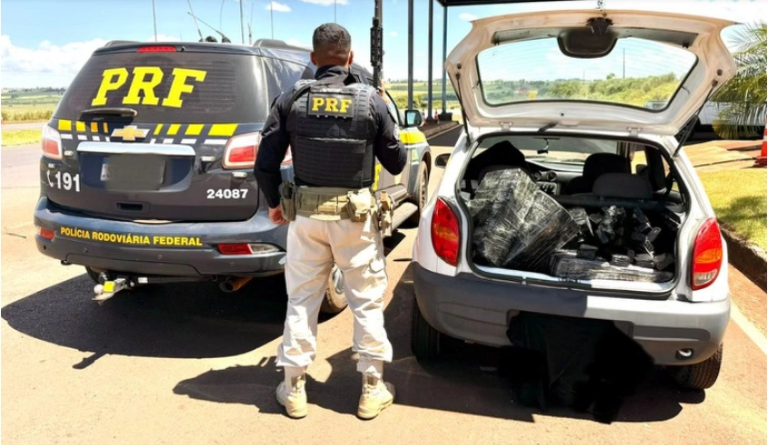 Traficante é flagrado pela PRF com maconha em porta-malas de carro em Mundo Novo