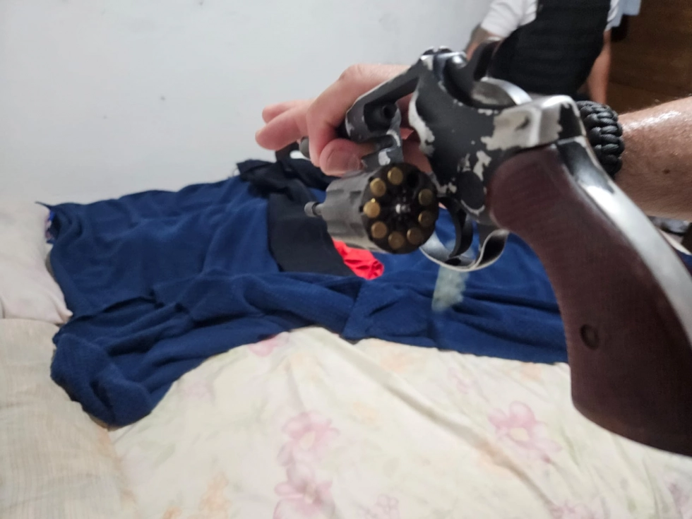 Diante da gravidade dos fatos e do risco iminente à integridade da vítima, a autoridade policial representou pela prisão preventiva do investigado, além da expedição de mandado de busca e apreensão. Durante a diligência no endereço do suspeito, a equipe policial localizou e apreendeu um revólver calibre .22, bem como oito munições do mesmo calibre, arma que teria sido utilizada para intimidar a vítima.