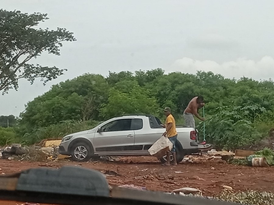 Dois homens foram flagrados nesse sábado (21) realizando descarte irregular de lixo na rua localizada atrás do Cemitério Municipal, em Nova Andradina. A ação foi registrada por um morador que passava pelo local e fotografou o momento em que os resíduos eram despejados de uma VW/Saveiro de cor prata.