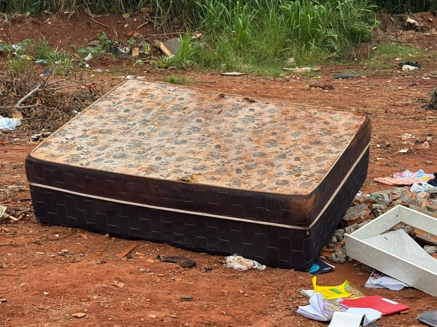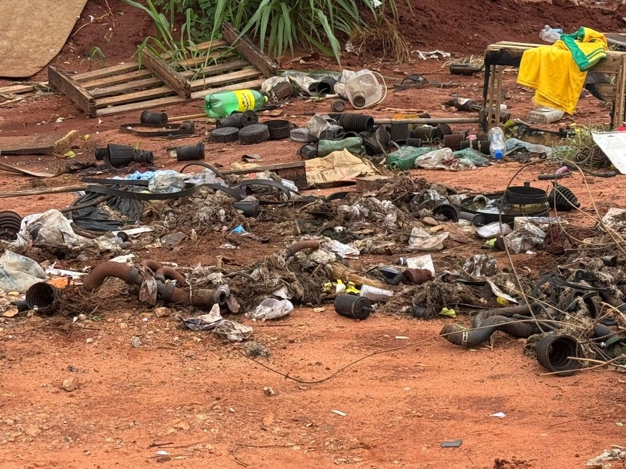 A reportagem constatou grande volume de resíduos espalhados pelo perímetro, incluindo pneus, restos de materiais de construção, móveis, colchões, brinquedos e até peças de oficina mecânica. Moradores relatam que o problema é recorrente.