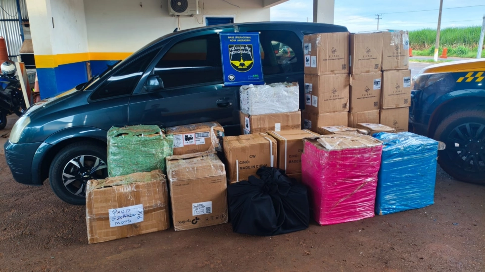 Policiais da Polícia Militar Rodoviária (PMR), lotados na Base Operacional do Vale do Ivinhema, apreenderam nesse domingo (22) grande quantidade de mercadorias de origem estrangeira sem comprovação fiscal durante policiamento na rodovia MS-141, no cruzamento com a BR-267, em Nova Andradina.