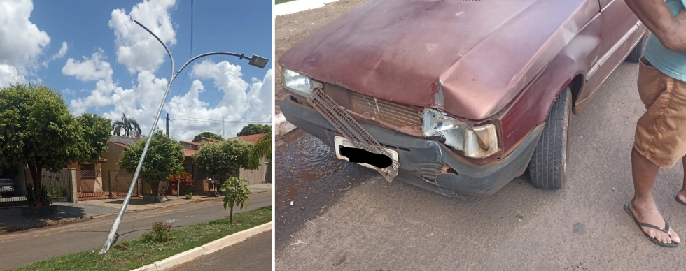 Homem sem CNH bate carro em poste no centro de Ivinhema