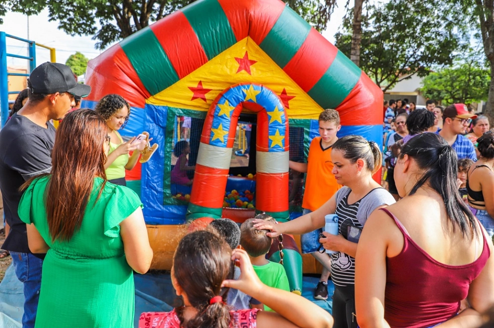 Brinquedos infláveis, atividades esportivas, pintura facial e distribuição de pipoca, picolé e algodão doce garantem uma tarde de muita diversão e integração social.