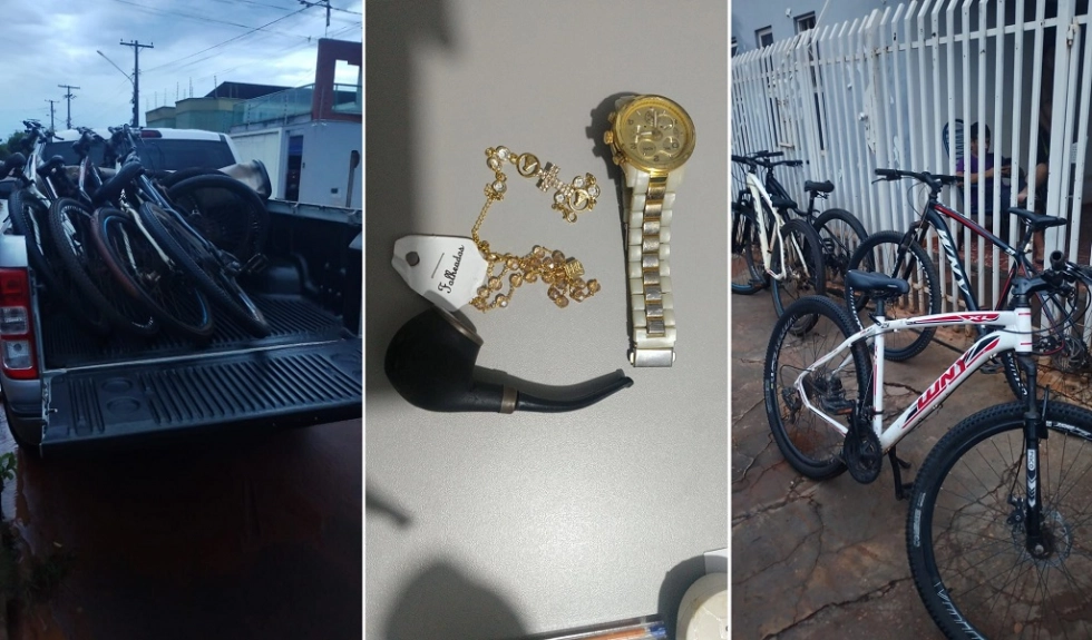 Entre os objetos recuperados estão oito bicicletas, joias e relógios de ouro; investigação aponta atuação em grupo com divisão de tarefas