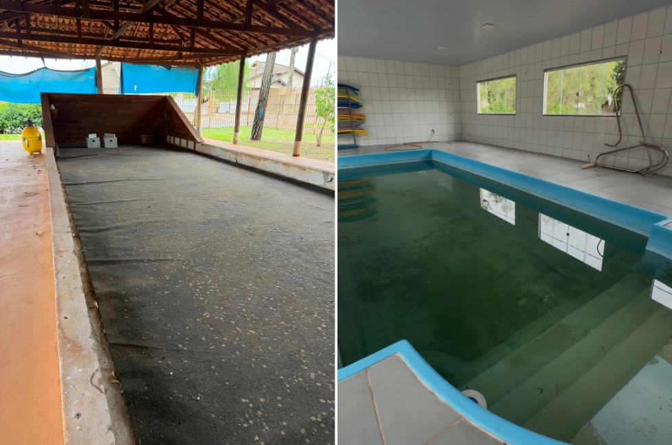 Requerimento aponta falhas na piscina, quadra esportiva, infiltrações no prédio e precariedade no campo de bocha