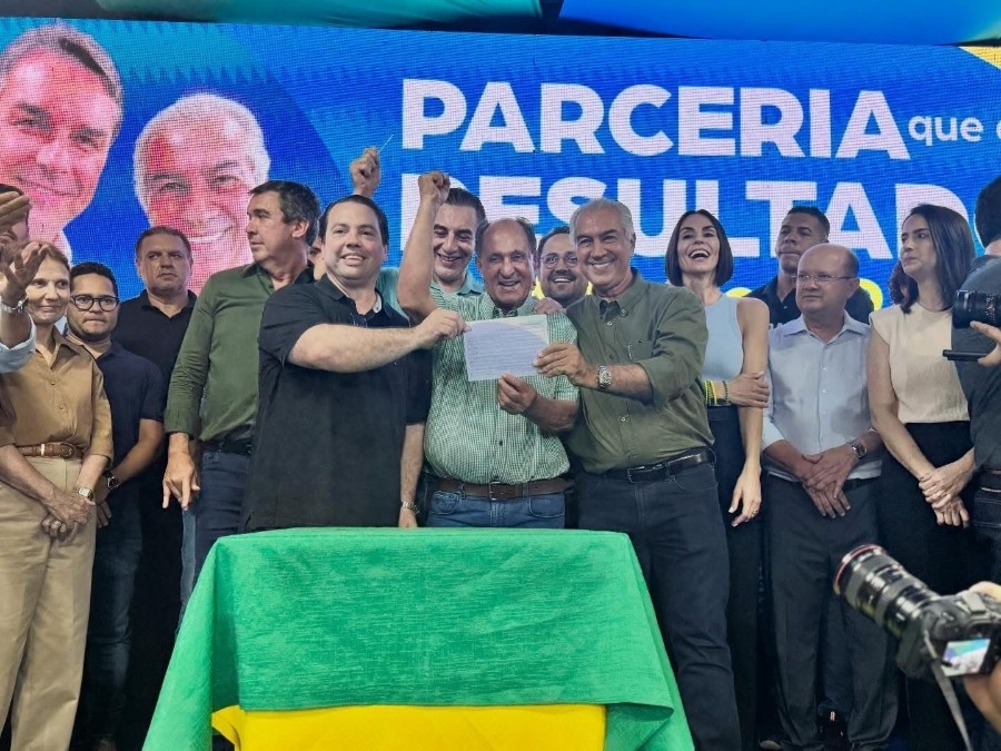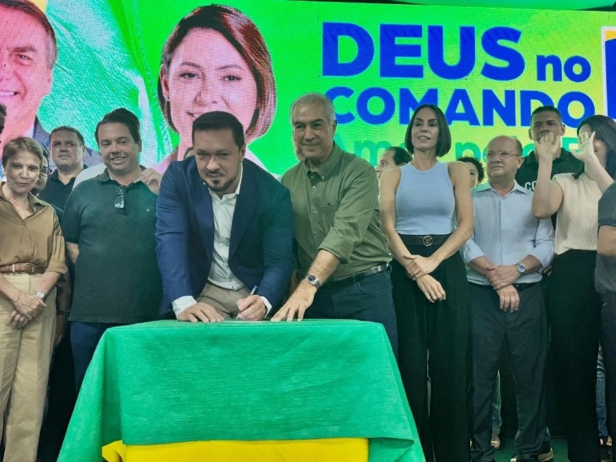 A solenidade foi conduzida pelo ex-governador Reinaldo Azambuja, presidente estadual do partido, e reuniu o governador Eduardo Riedel, prefeitos, lideranças políticas de várias regiões do Estado, parlamentares e os pré-candidatos ao Senado Capitão Contar e Gianni Nogueira.