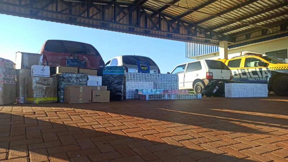 Já no segundo, um GM/Celta, os policiais localizaram 300 pacotes de cigarros e 700 unidades de cigarros eletrônicos, resultando em prejuízo estimado de R$ 64.000,00 ao crime.