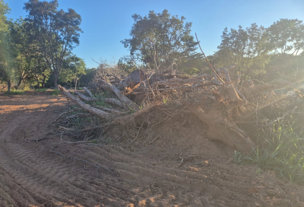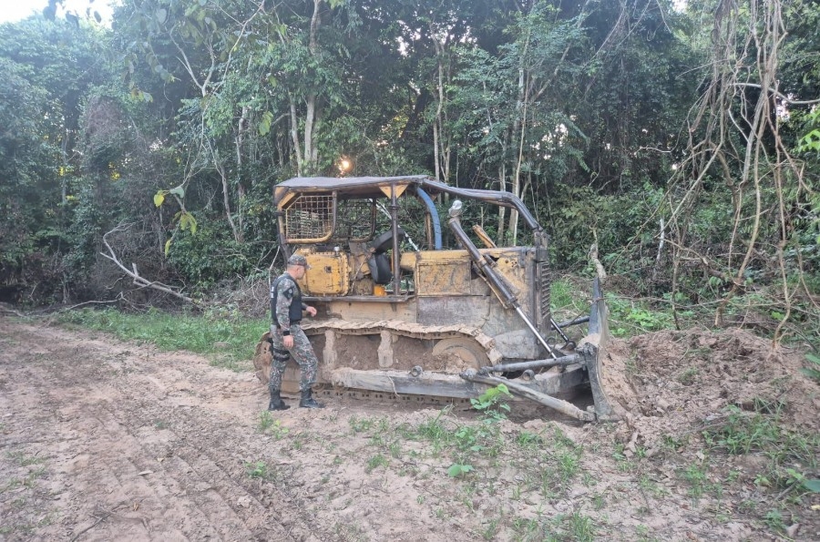 Durante a vistoria, a equipe encontrou ainda madeiras oriundas da atividade irregular, provenientes da limpeza de pastagem e da abertura de aceiros, além de maquinários utilizados na ação, entre eles um trator de esteira empregado na supressão da vegetação.