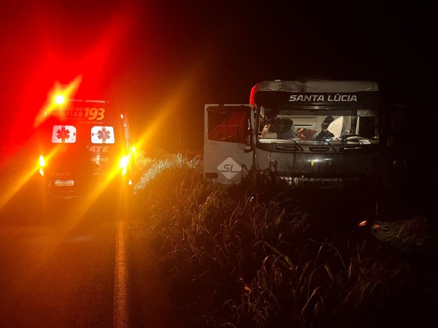 Após a avaliação da situação, a guarnição da unidade de resgate realizou a imobilização da vítima com prancha rígida e colar cervical, ainda dentro da cabine do caminhão. Em seguida, o homem foi retirado do veículo, colocado na viatura de resgate e encaminhado ao pronto-socorro do Hospital Regional de Nova Andradina.