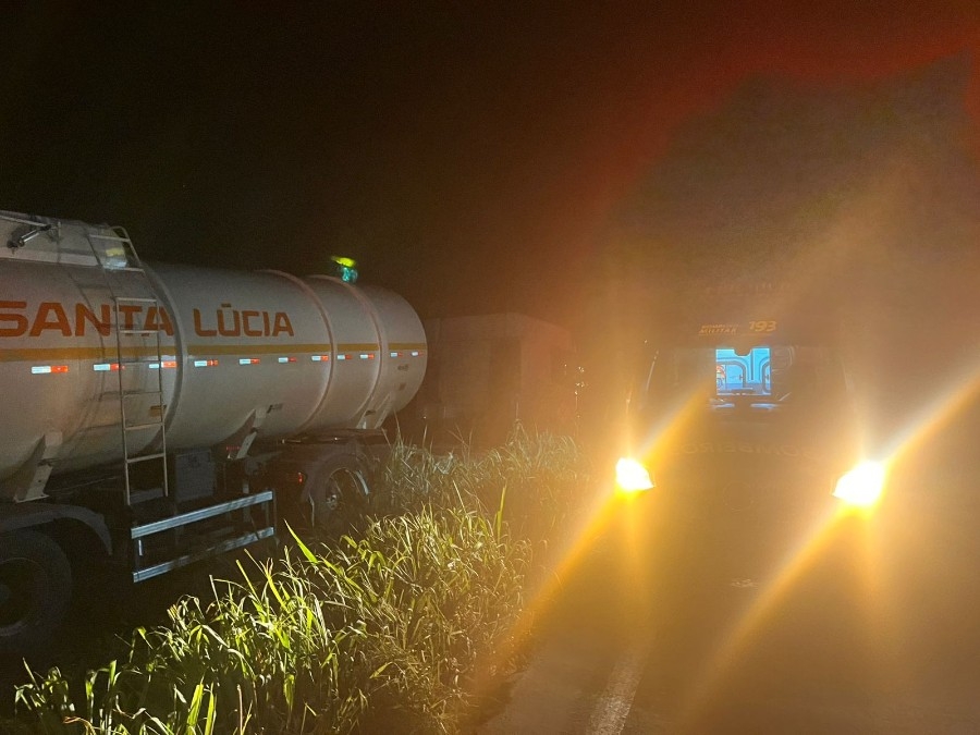 Motorista de caminhão-tanque fica ferido após saída de pista na MS-276