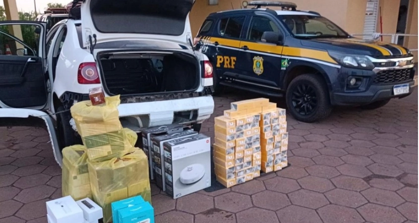 Em checagem, os policiais descobriram um compartimento oculto preparado no porta-malas do veículo; dentro, estavam escondidos os celulares. A mercadoria foi apreendida e encaminhada à Receita Federal.