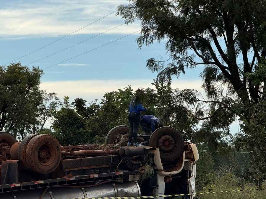 Motorista morre após caminhão carregado com leite tombar no Assentamento Peroba em Nova Andradina
