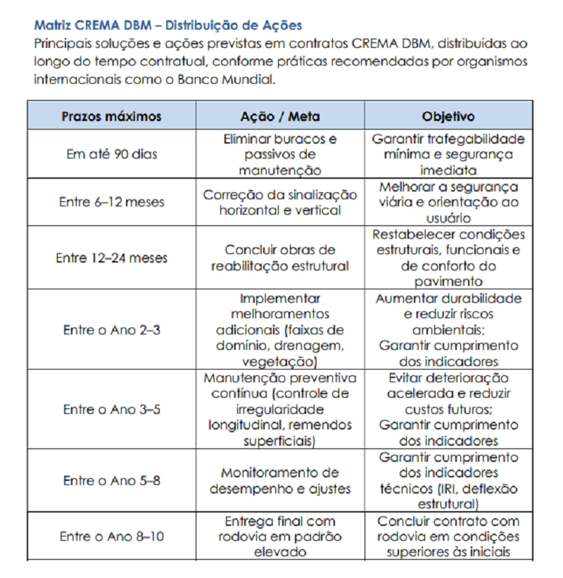 Com investimento estimado em US$ 250 milhões — cerca de R$ 1,25 bilhão na cotação atual — o projeto conta com financiamento de US$ 200 milhões do Banco Mundial (BIRD), além de contrapartida estadual de US$ 50 milhões. A proposta se destaca pela adoção de um modelo inovador de gestão, o Crema (Contrato de Restauração e Manutenção de Rodovias), que integra projeto, execução e manutenção em um único contrato.