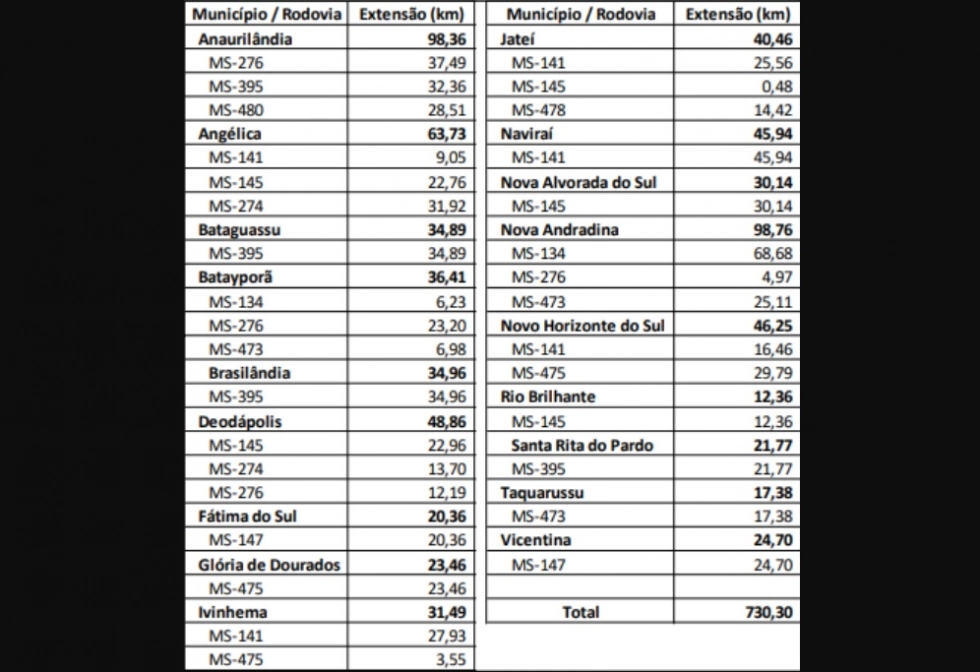 Governo prevê renovação de estradas e impacto direto em Nova Andradina, Batayporã e Taquarussu