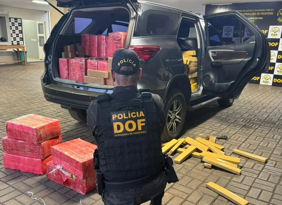 Policiais militares do DOF (Departamento de Operações de Fronteira) apreenderam, nessa quarta-feira (22), em Dourados, 1.500 quilos de maconha que eram transportados em uma Toyota/SW4, roubada no Estado do Rio de Janeiro. Na ação, um homem de 32 anos foi preso em flagrante.