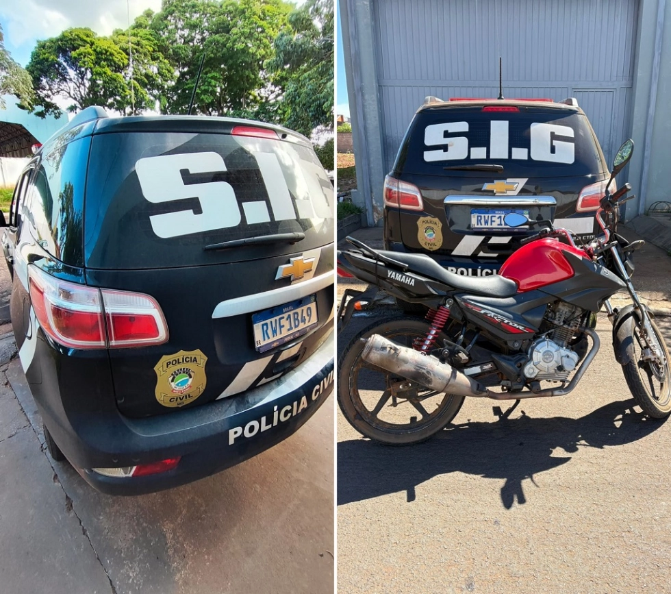 A Seção de Investigações Gerais (SIG) da Delegacia de Polícia Civil de Nova Andradina esclareceu, nesta quinta-feira (23), o furto de uma motocicleta ocorrido em Taquarussu e recuperou o veículo durante diligências na região.