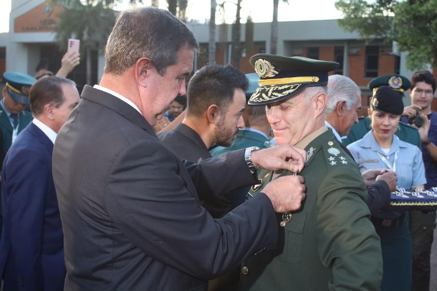 O governador Eduardo Riedel participou, na quinta-feira (23), da entrega da Medalha Tiradentes, uma das principais honrarias concedidas pela Polícia Militar de Mato Grosso do Sul. A solenidade ocorreu no Comando-Geral da PMMS, em Campo Grande.